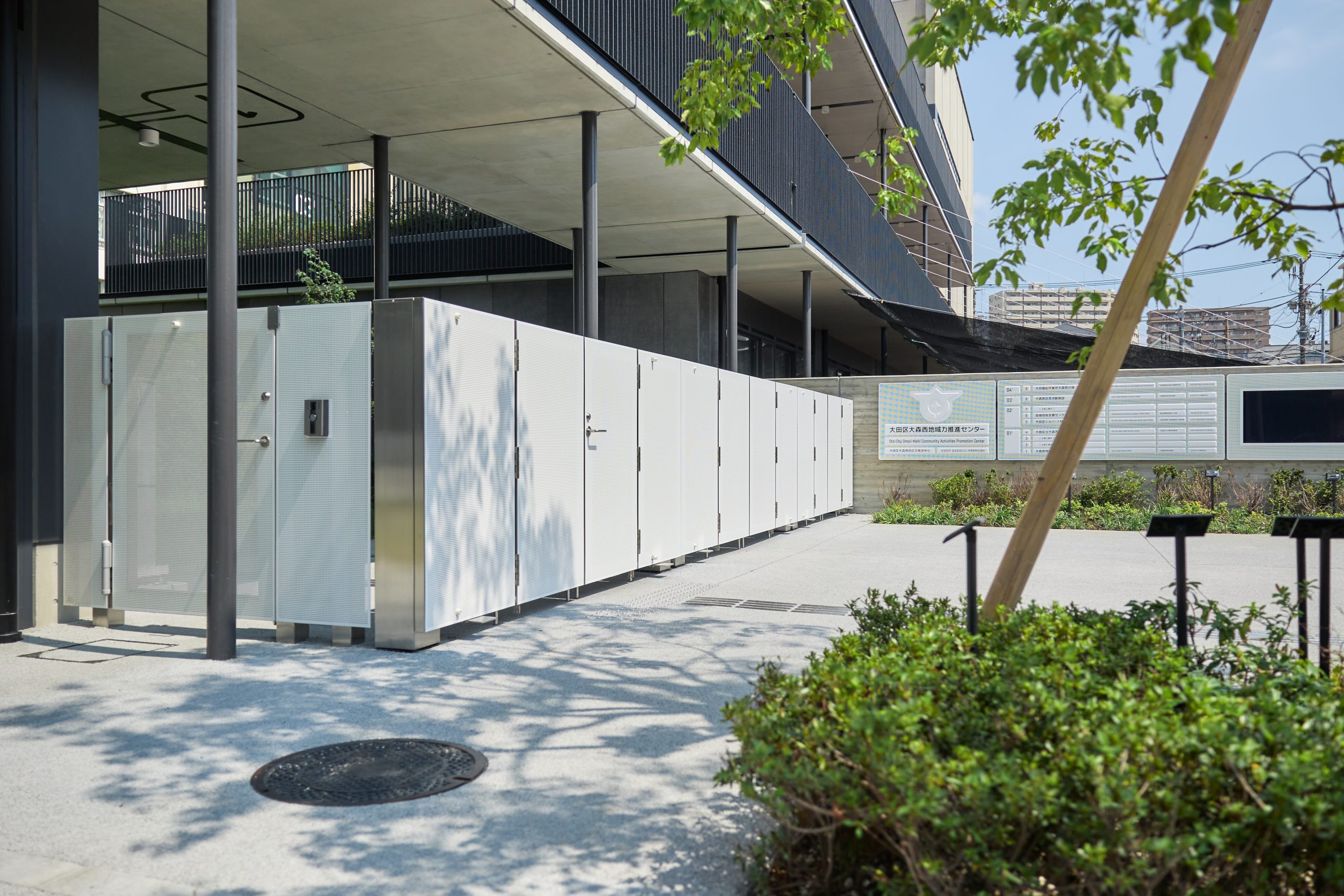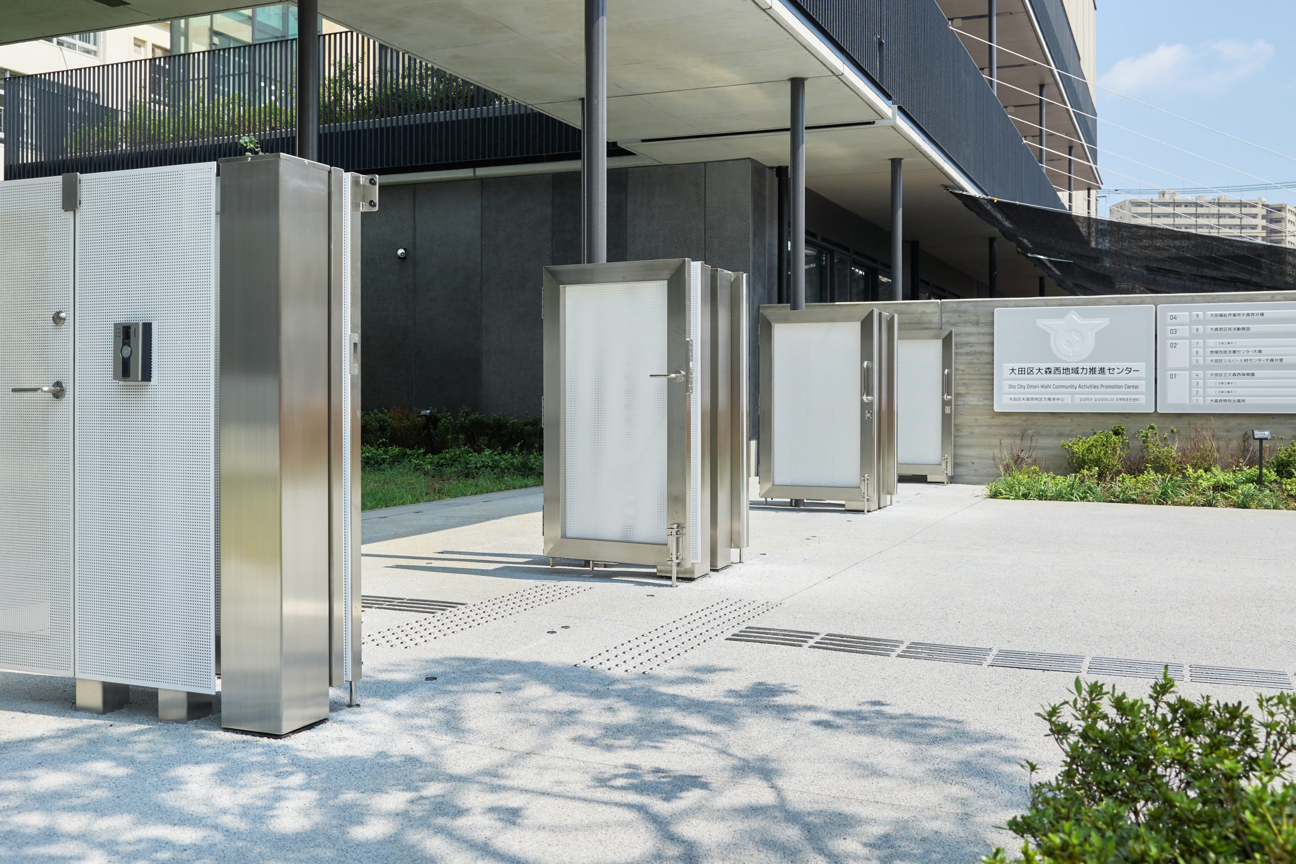 2025年9月にオープンした「大田区大森西地域力推進センター」。特別出張所や地域包括支援センター、保育園などをひとつにまとめ、利便性の向上や災害時の防災拠点機能の強化を目的とした複合施設です。体育室や音楽スタジオ、多目的室なども併設し、地域のにぎわい創出も期待されています。今回は、プロポーザルから設計・監理まで携わった佐藤総合計画 渥美潤様・梅原雅子様・宮澤靖生様に、設計コンセプトやヒガノ製ゲート採用の背景について伺いました。